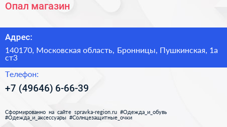 Опал, магазин по адресу 140170, Московская область, Бронницы, Пушкинская, 1а ст3 в дальнейшем Организация, размещена в следующих категориях:
