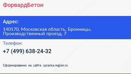 ФорвардБетон по адресу 140170, Московская область, Бронницы, Производственный проезд, 7 в дальнейшем Организация, размещена в следующих категориях: