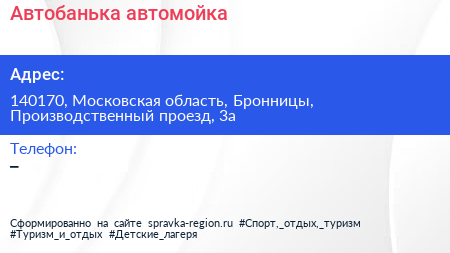 Автобанька, автомойка по адресу 140170, Московская область, Бронницы, Производственный проезд, 3а в дальнейшем Организация, размещена в следующих категориях: