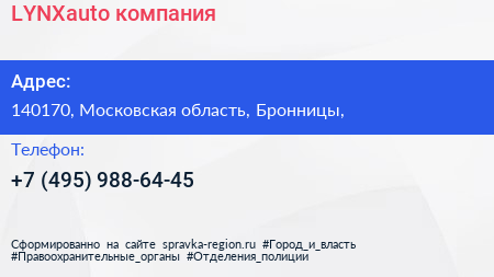 LYNXauto, компания по адресу 140170, Московская область, Бронницы, в дальнейшем Организация, размещена в следующих категориях: