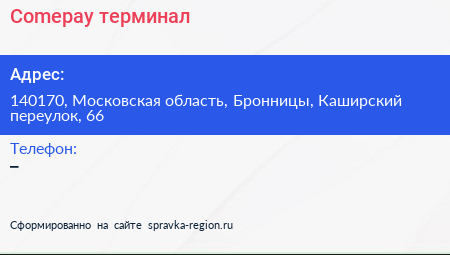 Comepay, терминал по адресу 140170, Московская область, Бронницы, Каширский переулок, 66 в дальнейшем Организация, размещена в следующих категориях: