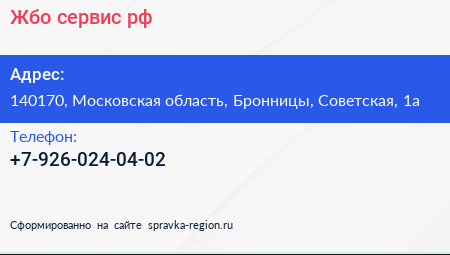 Жбо-сервис.рф по адресу 140170, Московская область, Бронницы, Советская, 1а в дальнейшем Организация, размещена в следующих категориях: