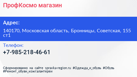 ПрофКосмо, магазин по адресу 140170, Московская область, Бронницы, Советская, 155 ст1 в дальнейшем Организация, размещена в следующих категориях: