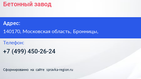Бетонный завод по адресу 140170, Московская область, Бронницы, в дальнейшем Организация, размещена в следующих категориях: