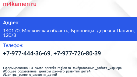 m4kamen.ru по адресу 140170, Московская область, Бронницы, деревня Панино, 120/8 в дальнейшем Организация, размещена в следующих категориях: