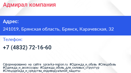 Адмирал, компания по адресу 241019, Брянская область, Брянск, Карачевская, 32 в дальнейшем Организация, размещена в следующих категориях: