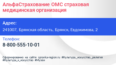 АльфаСтрахование-ОМС, страховая медицинская организация по адресу 241007, Брянская область, Брянск, Евдокимова, 2 в дальнейшем Организация, размещена в следующих категориях: