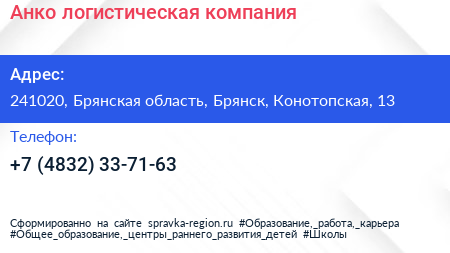 Анко, логистическая компания по адресу 241020, Брянская область, Брянск, Конотопская, 13 в дальнейшем Организация, размещена в следующих категориях: