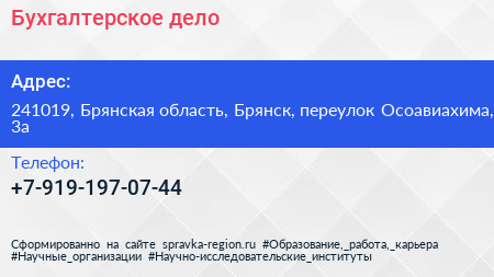 Бухгалтерское дело по адресу 241019, Брянская область, Брянск, переулок Осоавиахима, 3а в дальнейшем Организация, размещена в следующих категориях: