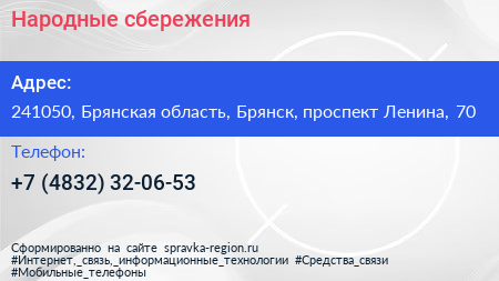 Народные сбережения по адресу 241050, Брянская область, Брянск, проспект Ленина, 70 в дальнейшем Организация, размещена в следующих категориях: