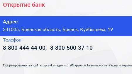 Открытие, банк по адресу 241035, Брянская область, Брянск, Куйбышева, 19 в дальнейшем Организация, размещена в следующих категориях: