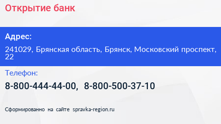 Открытие, банк по адресу 241029, Брянская область, Брянск, Московский проспект, 22 в дальнейшем Организация, размещена в следующих категориях: