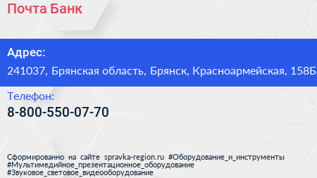 Почта Банк по адресу 241037, Брянская область, Брянск, Красноармейская, 158Б в дальнейшем Организация, размещена в следующих категориях: