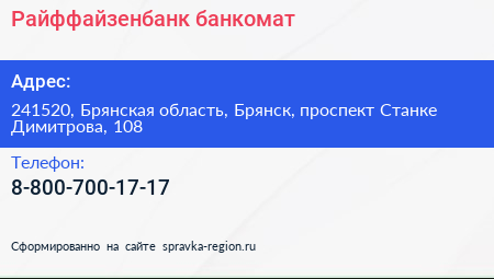 Райффайзенбанк, банкомат по адресу 241520, Брянская область, Брянск, проспект Станке Димитрова, 108 в дальнейшем Организация, размещена в следующих категориях: