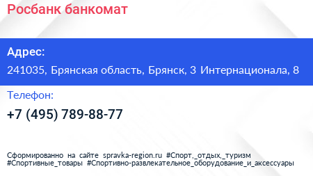 Росбанк, банкомат по адресу 241035, Брянская область, Брянск, 3 Интернационала, 8 в дальнейшем Организация, размещена в следующих категориях: