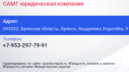 САМГ, юридическая компания по адресу 241022, Брянская область, Брянск, Академика Королёва, 9 в дальнейшем Организация, размещена в следующих категориях:
