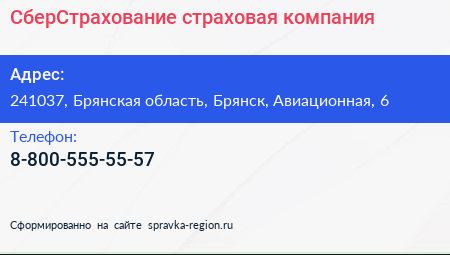 СберСтрахование, страховая компания по адресу 241037, Брянская область, Брянск, Авиационная, 6 в дальнейшем Организация, размещена в следующих категориях:
