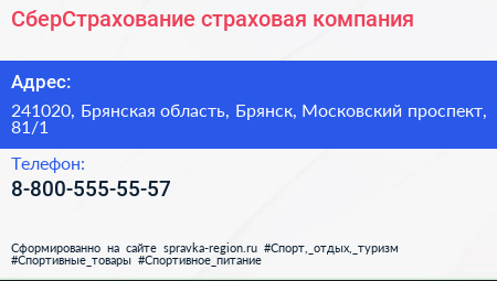 СберСтрахование, страховая компания по адресу 241020, Брянская область, Брянск, Московский проспект, 81/1 в дальнейшем Организация, размещена в следующих категориях: