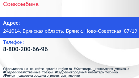 Совкомбанк по адресу 241014, Брянская область, Брянск, Ново-Советская, 87/19 в дальнейшем Организация, размещена в следующих категориях: