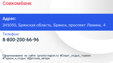 Совкомбанк по адресу 241050, Брянская область, Брянск, проспект Ленина, 4 в дальнейшем Организация, размещена в следующих категориях: