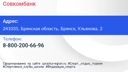Совкомбанк по адресу 241035, Брянская область, Брянск, Ульянова, 2 в дальнейшем Организация, размещена в следующих категориях: