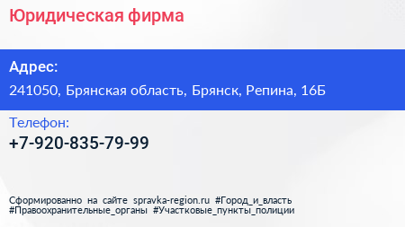 Юридическая фирма по адресу 241050, Брянская область, Брянск, Репина, 16Б в дальнейшем Организация, размещена в следующих категориях:
