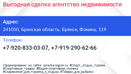 Выгодная сделка, агентство недвижимости по адресу 241050, Брянская область, Брянск, Фокина, 119 в дальнейшем Организация, размещена в следующих категориях: