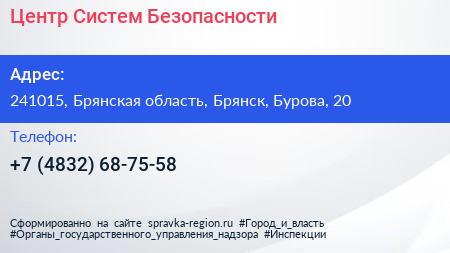 Центр Систем Безопасности по адресу 241015, Брянская область, Брянск, Бурова, 20 в дальнейшем Организация, размещена в следующих категориях: