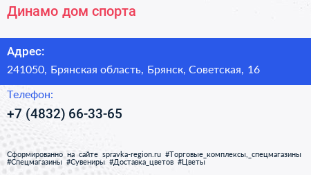 Динамо, дом спорта по адресу 241050, Брянская область, Брянск, Советская, 16 в дальнейшем Организация, размещена в следующих категориях: