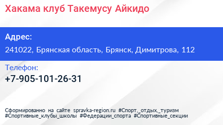 Хакама, клуб Такемусу Айкидо по адресу 241022, Брянская область, Брянск, Димитрова, 112 в дальнейшем Организация, размещена в следующих категориях: