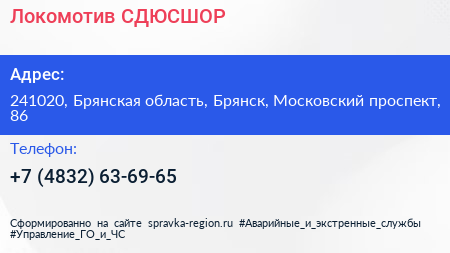 Локомотив, СДЮСШОР по адресу 241020, Брянская область, Брянск, Московский проспект, 86 в дальнейшем Организация, размещена в следующих категориях:
