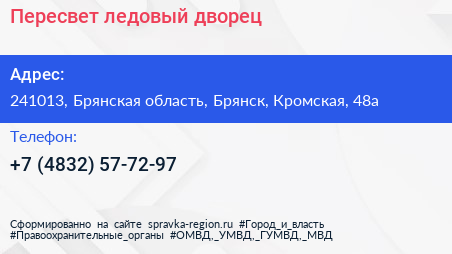 Пересвет, ледовый дворец по адресу 241013, Брянская область, Брянск, Кромская, 48а в дальнейшем Организация, размещена в следующих категориях: