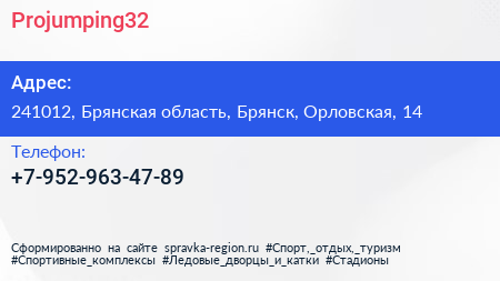 Projumping32 по адресу 241012, Брянская область, Брянск, Орловская, 14 в дальнейшем Организация, размещена в следующих категориях: