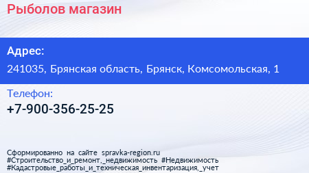 Рыболов, магазин по адресу 241035, Брянская область, Брянск, Комсомольская, 1 в дальнейшем Организация, размещена в следующих категориях: