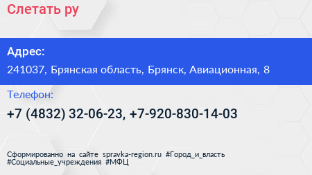 Слетать.ру по адресу 241037, Брянская область, Брянск, Авиационная, 8 в дальнейшем Организация, размещена в следующих категориях: