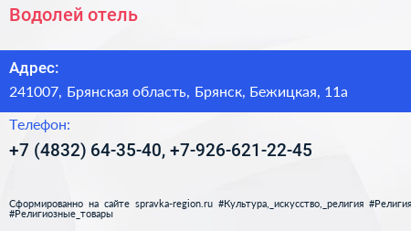 Водолей, отель по адресу 241007, Брянская область, Брянск, Бежицкая, 11а в дальнейшем Организация, размещена в следующих категориях: