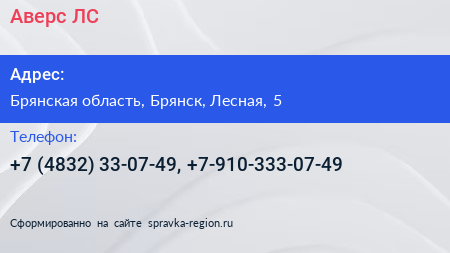 Аверс-ЛС по адресу Брянская область, Брянск, Лесная, 5 в дальнейшем Организация, размещена в следующих категориях: