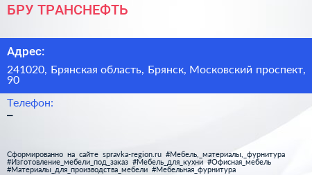 БРУ ТРАНСНЕФТЬ по адресу 241020, Брянская область, Брянск, Московский проспект, 90 в дальнейшем Организация, размещена в следующих категориях: