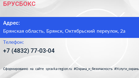 БРУСБОКС по адресу Брянская область, Брянск, Октябрьский переулок, 2а в дальнейшем Организация, размещена в следующих категориях: