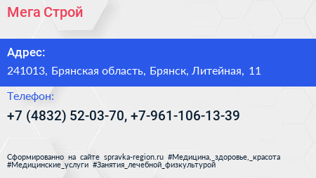 Мега-Строй по адресу 241013, Брянская область, Брянск, Литейная, 11 в дальнейшем Организация, размещена в следующих категориях: