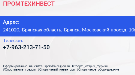 ПРОМТЕХИНВЕСТ по адресу 241020, Брянская область, Брянск, Московский проезд, 10а в дальнейшем Организация, размещена в следующих категориях: