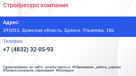 Стройресурс, компания по адресу 241015, Брянская область, Брянск, Ульянова, 18а в дальнейшем Организация, размещена в следующих категориях: