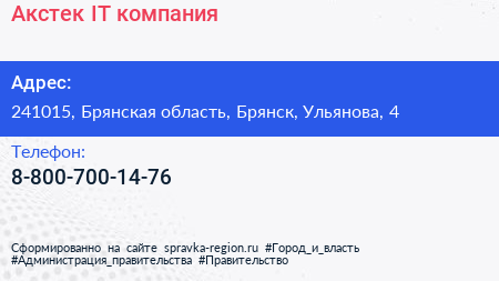 Акстек, IT-компания по адресу 241015, Брянская область, Брянск, Ульянова, 4 в дальнейшем Организация, размещена в следующих категориях: