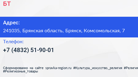 БТ по адресу 241035, Брянская область, Брянск, Комсомольская, 7 в дальнейшем Организация, размещена в следующих категориях: