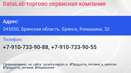 DataLab, торгово-сервисная компания по адресу 241050, Брянская область, Брянск, Ромашина, 32 в дальнейшем Организация, размещена в следующих категориях:
