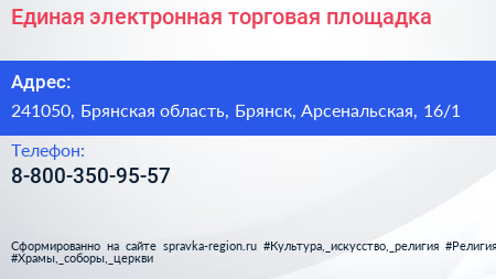Единая электронная торговая площадка по адресу 241050, Брянская область, Брянск, Арсенальская, 16/1 в дальнейшем Организация, размещена в следующих категориях: