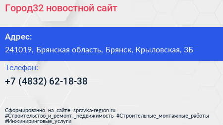 Город32, новостной сайт по адресу 241019, Брянская область, Брянск, Крыловская, 3Б в дальнейшем Организация, размещена в следующих категориях: