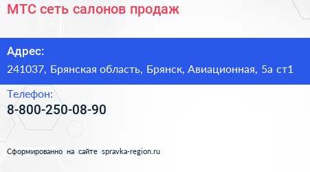 МТС, сеть салонов продаж по адресу 241037, Брянская область, Брянск, Авиационная, 5а ст1 в дальнейшем Организация, размещена в следующих категориях: