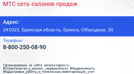 МТС, сеть салонов продаж по адресу 241023, Брянская область, Брянск, Объездная, 30 в дальнейшем Организация, размещена в следующих категориях: