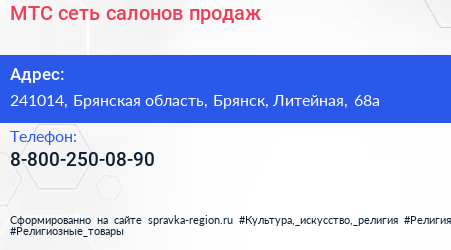 МТС, сеть салонов продаж по адресу 241014, Брянская область, Брянск, Литейная, 68а в дальнейшем Организация, размещена в следующих категориях: